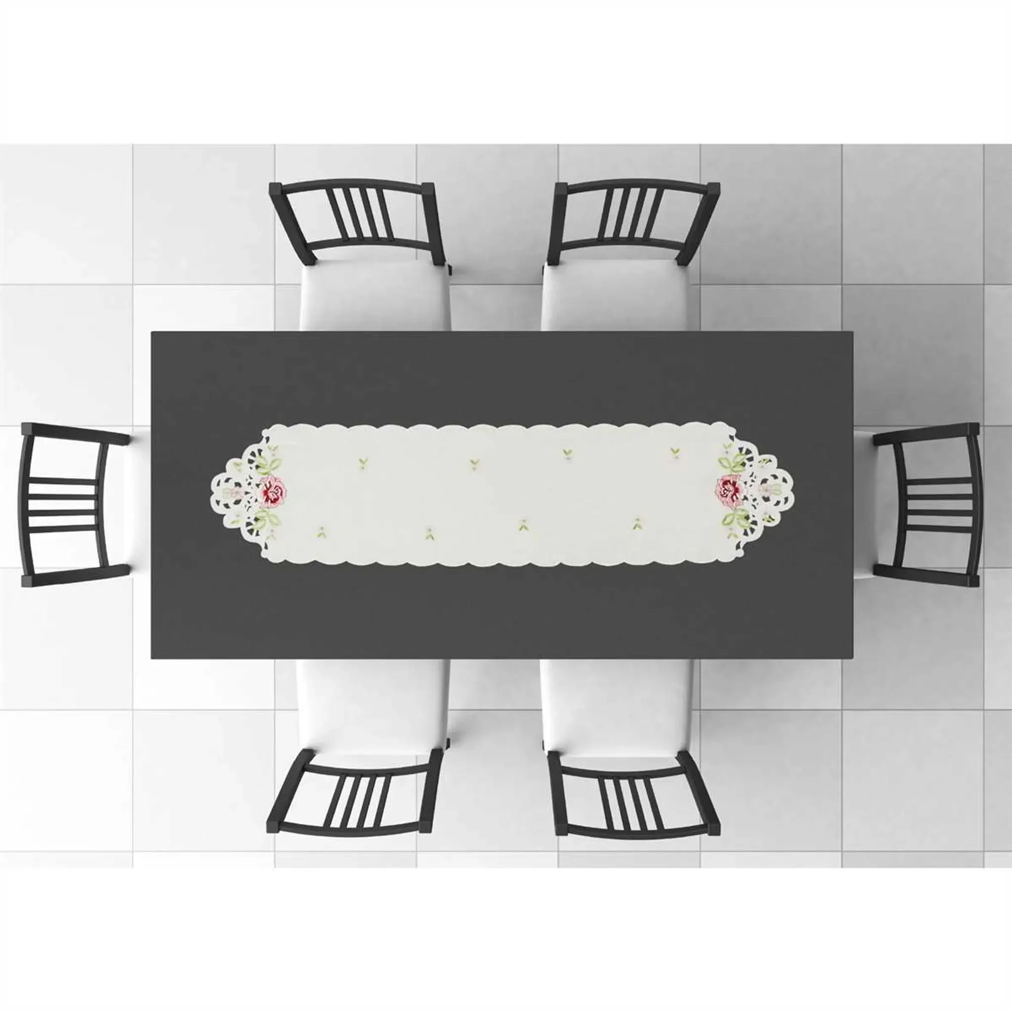 Verleihen Sie Ihrem Tisch einen eleganten Look mit dem ARSVITA Tischläufer. Mit kunstvoller Stickerei von Blumen und Schmetterlingen sowie zartem Cutwork und leichter Spitze ist dieser Läufer ideal für Hochzeiten, Taufen, Kommunions- oder Konfirmationsfeiern. Das feine Design macht ihn zum Blickfang auf jedem festlich gedeckten Tisch.