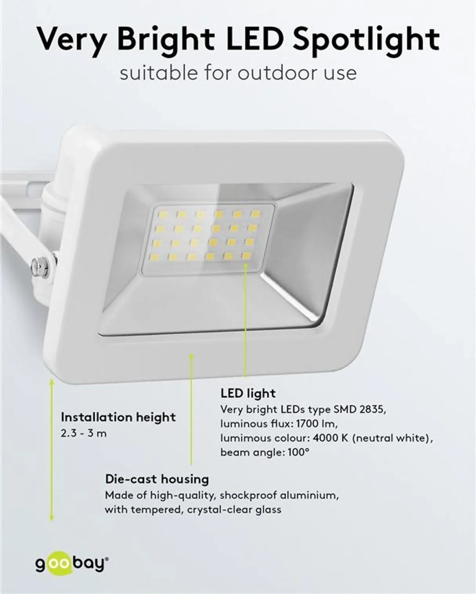 Produktinformationen "Goobay LED-Außenstrahler 20 W – Neutralweiß (4000 K)"