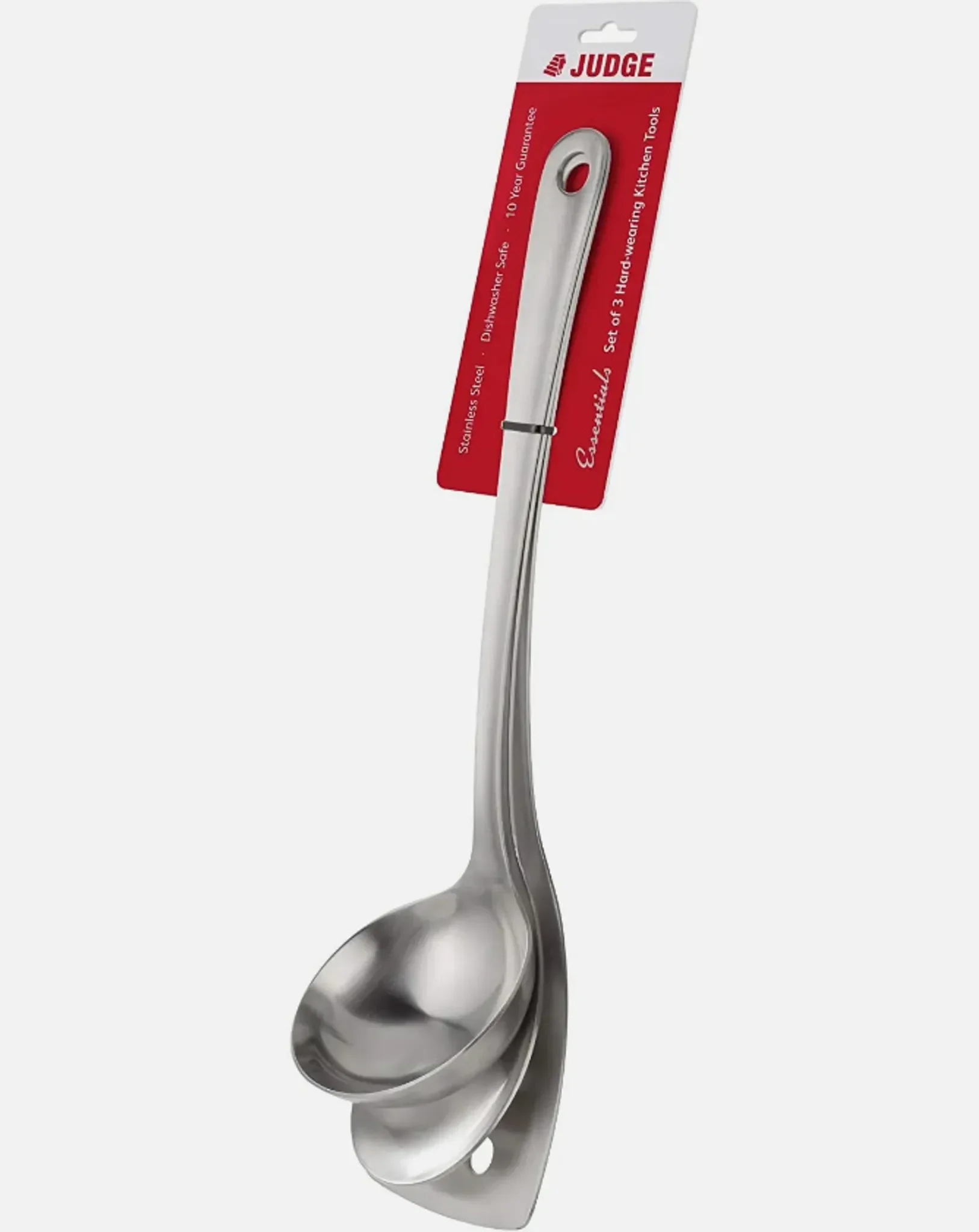 Ob Suppen schöpfen, Speisen umrühren oder Bratgut wenden – dieses Set deckt die wichtigsten Aufgaben in der Küche ab. Die glatten Edelstahloberflächen sind verschleißfest und lassen sich besonders leicht reinigen.