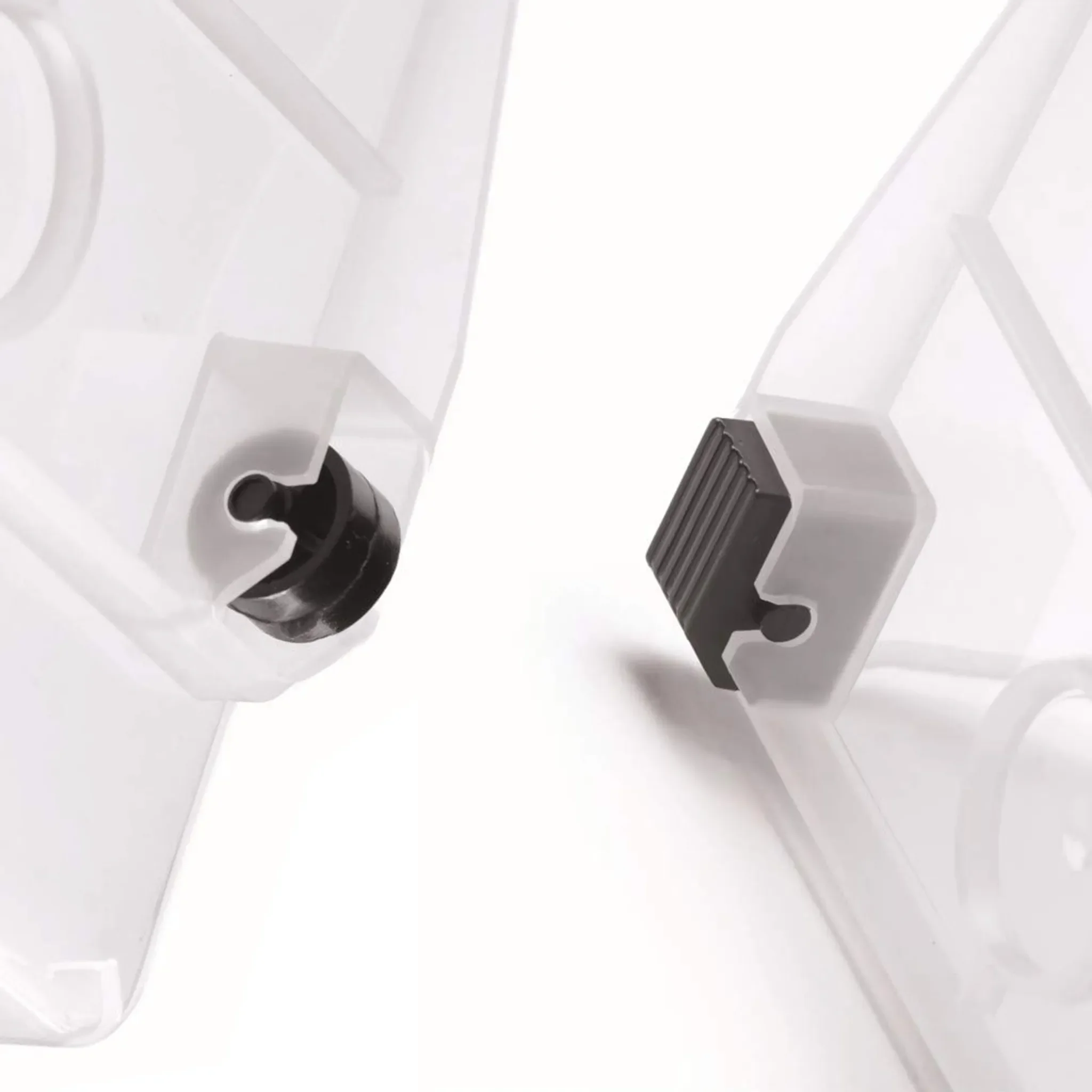 Highlights: Transparenter Kunststoff für klare Sicht, platzsparend, mobil dank Rollen, robust und langlebig, vielseitig einsetzbar und sofort einsatzbereit.