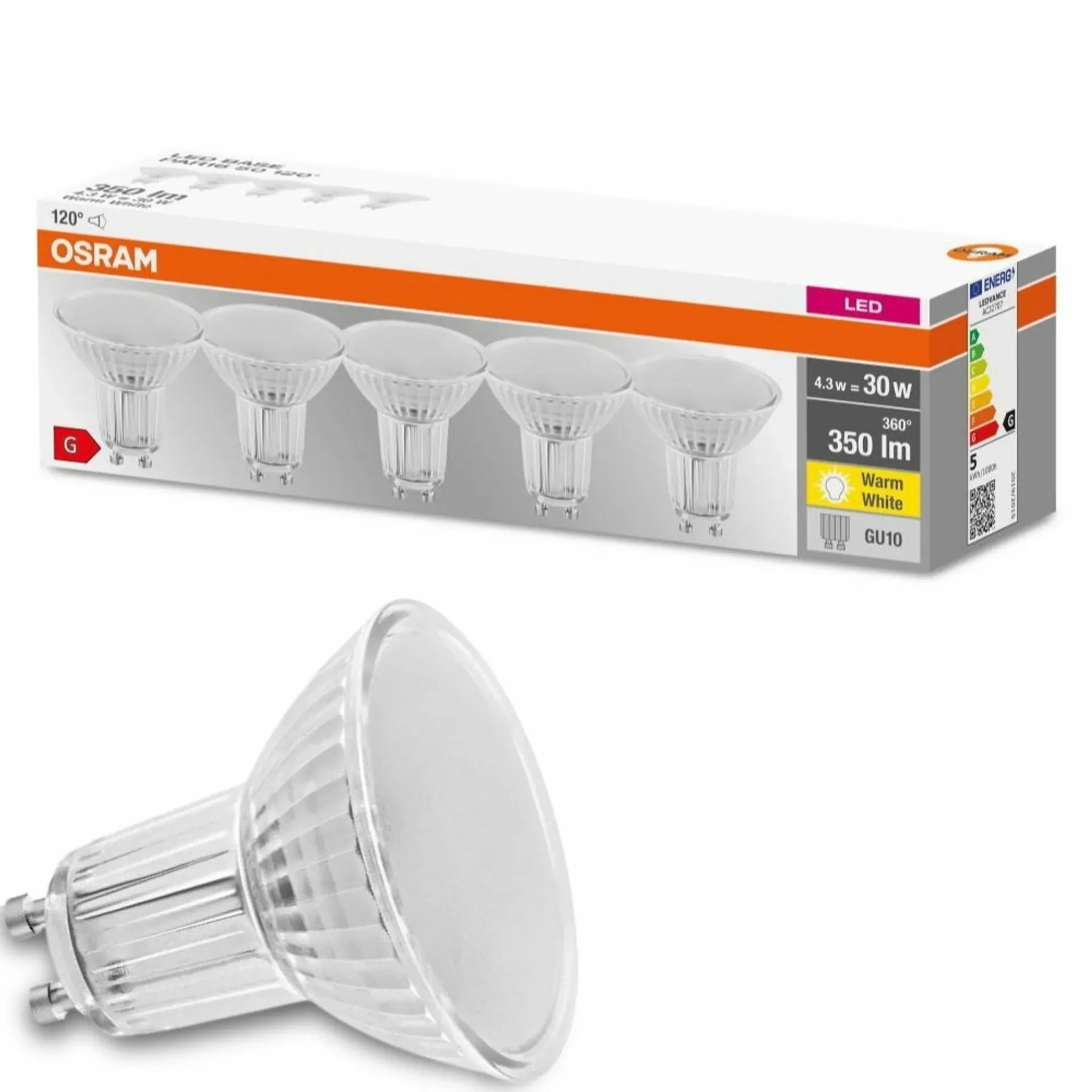 Der OSRAM LED Spot PAR16 ist die ideale Alternative zu herkömmlichen Hochvolt-Halogenlampen. Mit nur 4,3 W ersetzt er 30 W Halogenleistung und liefert 350 Lumen warmweißes Licht bei 2700 K. Die LEDs entfalten sofort volle Lichtleistung, erzeugen kaum Wärme und sind stoß- sowie vibrationsfest. Dieses 5er-Set eignet sich perfekt für Spotbeleuchtung in Wohnräumen, Partykellern, als Downlight oder zur gezielten Akzentbeleuchtung von Objekten. Die Lampen sind nicht dimmbar und quecksilberfrei.