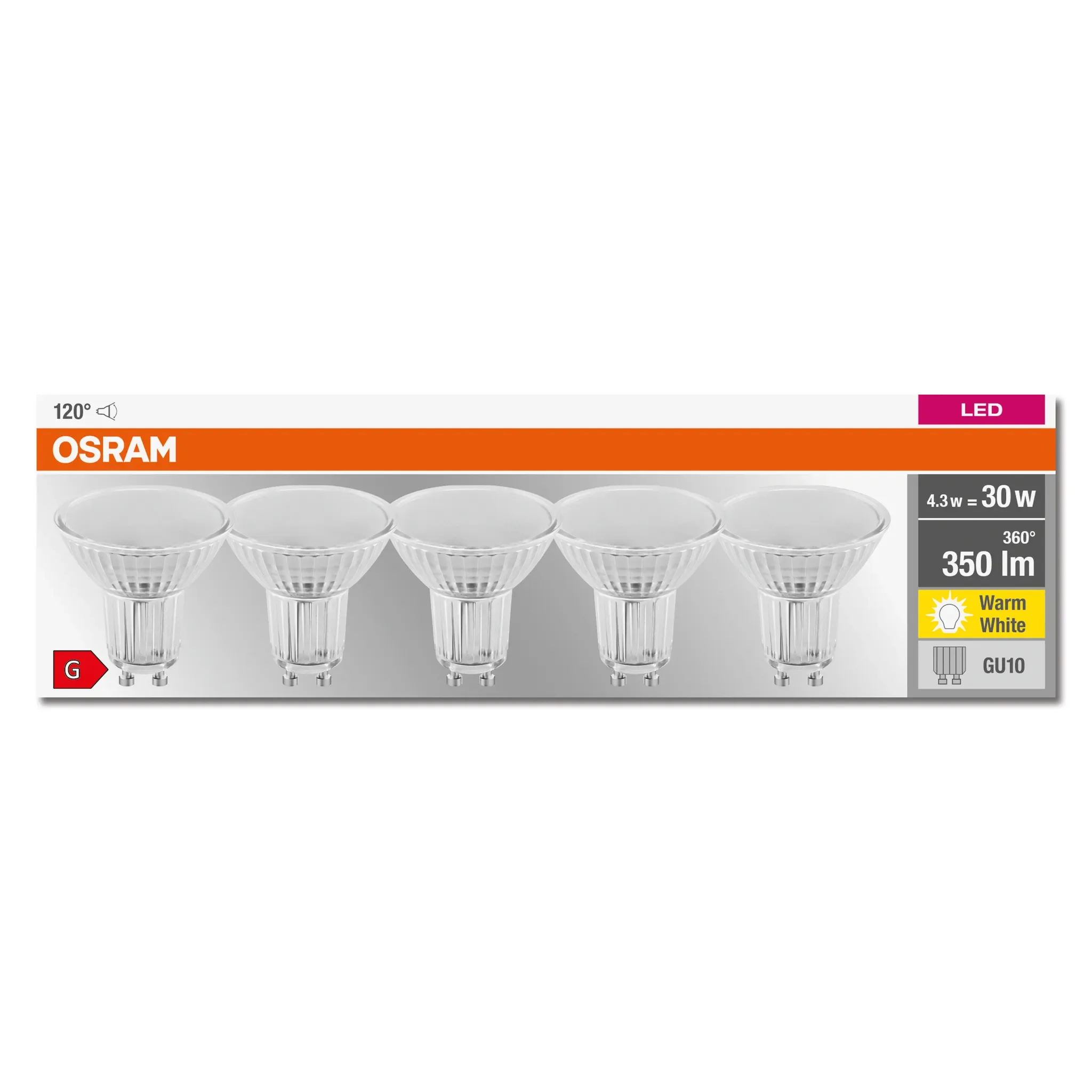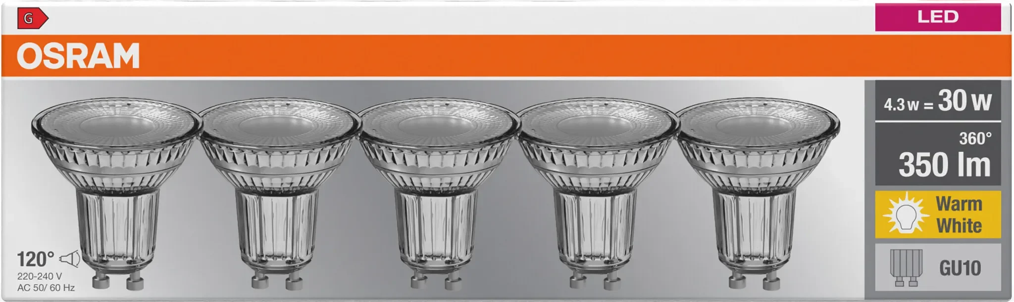 OSRAM LED Reflektorlampe PAR16 – GU10, 4,3 W, 5er-Pack